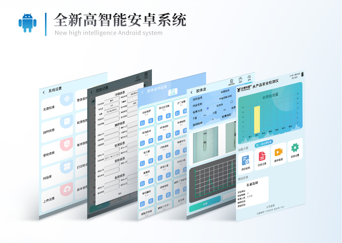 山東云唐智能科技有限公司生產(chǎn)的水產(chǎn)品安全檢測儀可適用于魚、蝦等水產(chǎn)中孔雀石綠、氯霉素、硝基呋喃類:呋喃唑酮(AOZ)、呋喃它酮( AMOZ )、呋喃妥因(AHD)、呋喃西林(SEM)、呋喃那斯、磺胺類、激素類、四環(huán)素類、金霉素、土霉素、甲砜霉素、氟苯尼考、喹諾酮類藥物:噁喹酸、諾氟沙星、恩諾沙星、環(huán)丙沙星、氧氟沙星等藥物殘留的定性檢測